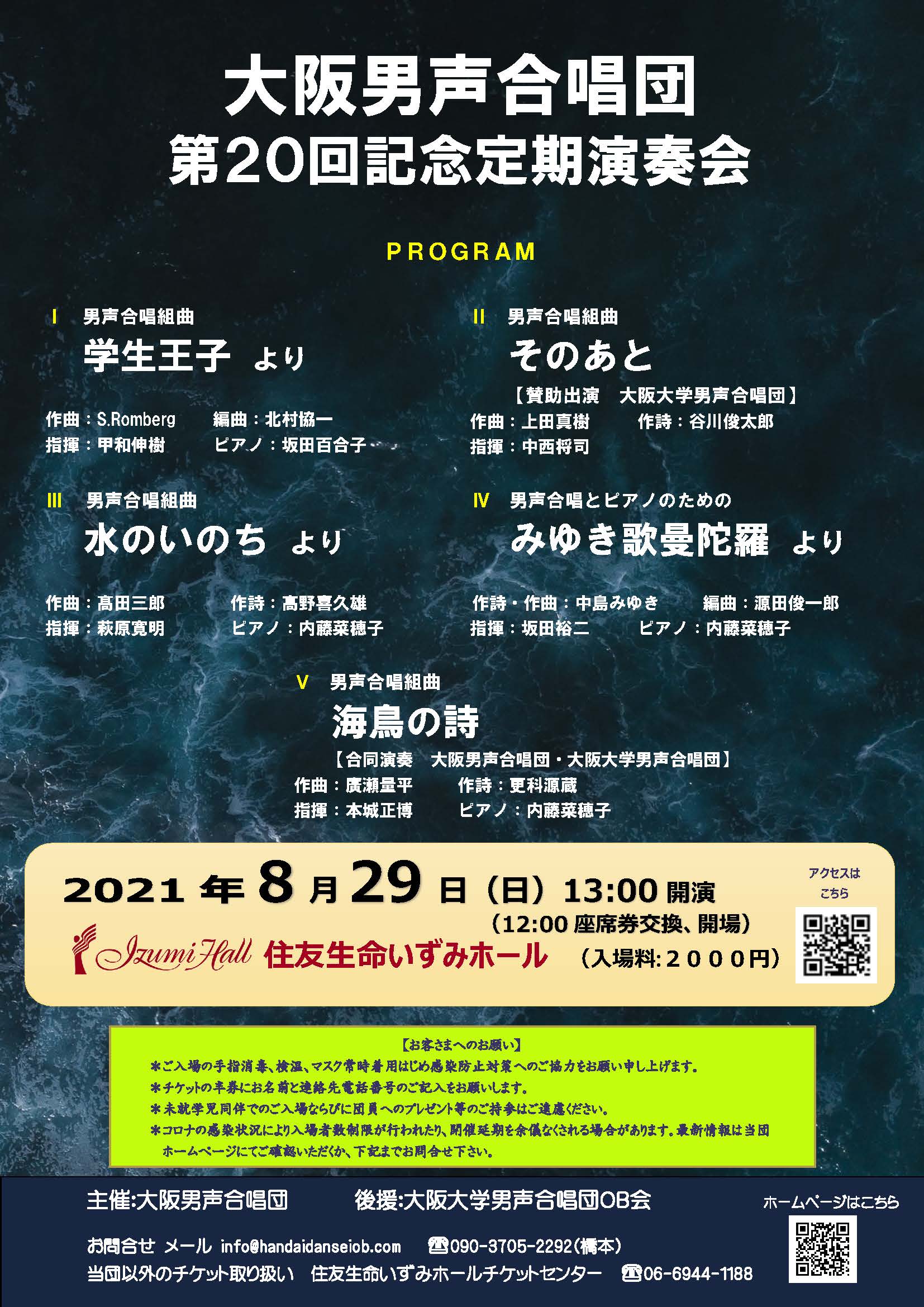 大阪男声合唱団は2021 年8月29日、第20回定期演奏会を大阪の住友生命いずみホールで開催しました。